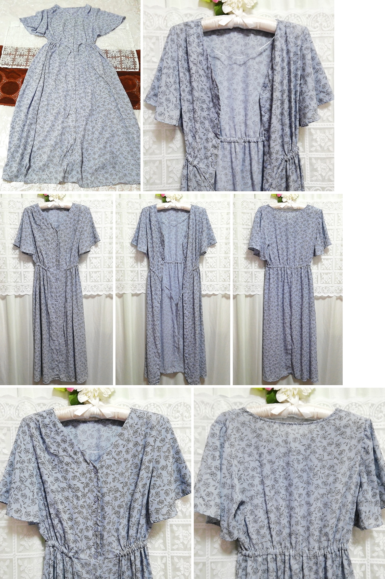 インドネシア製水色花柄マキシワンピースシフォンカーディガンネグリジェ Indonesian blue floral maxi dress chiffon cardigan negligee, ワンピース, ロングスカート, Mサイズ