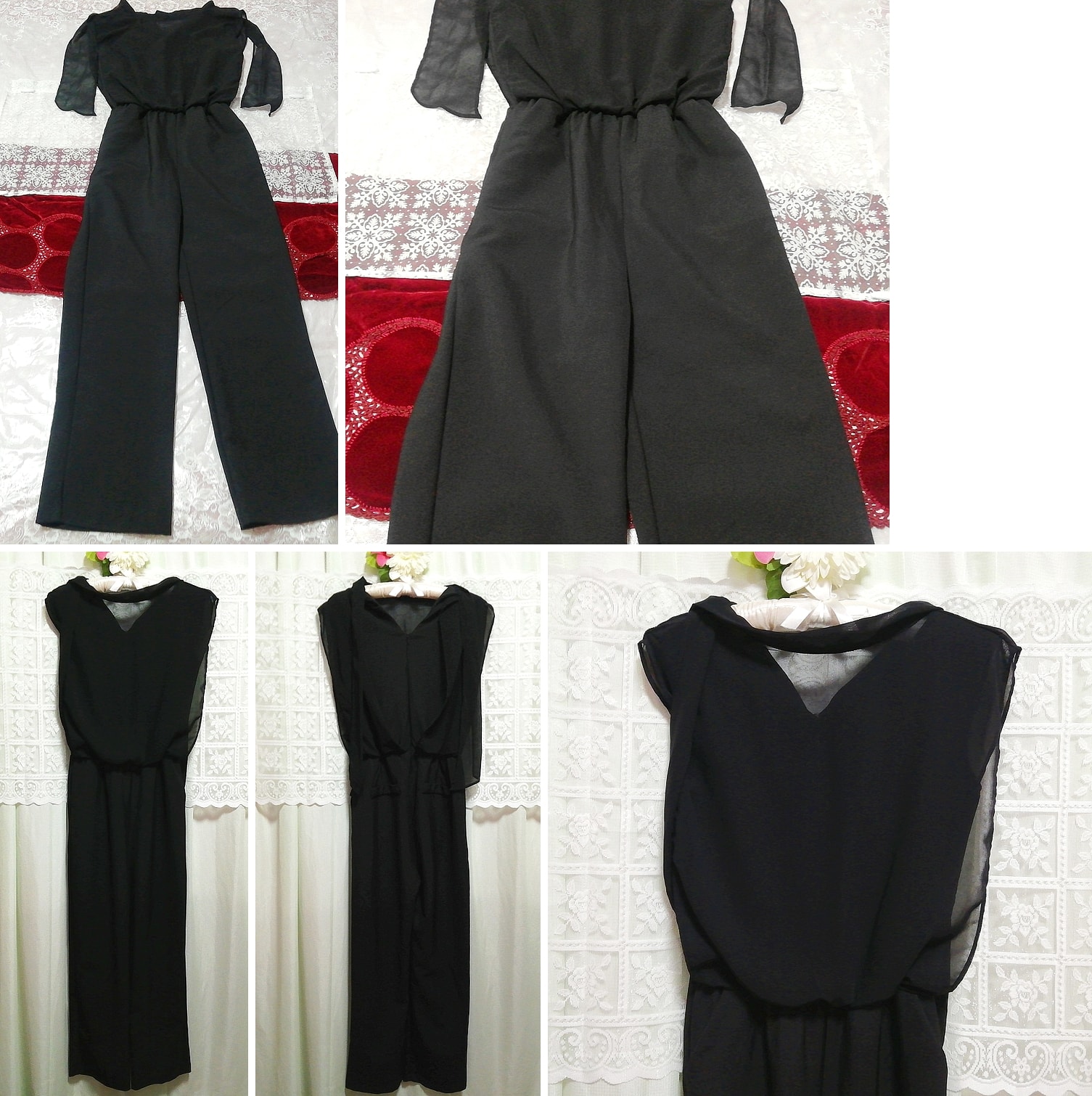 黒マキシサロペットシフォンドレスネグリジェ Black maxi overalls chiffon dress negligee, ファッション, レディースファッション, サロペット、オーバーオール
