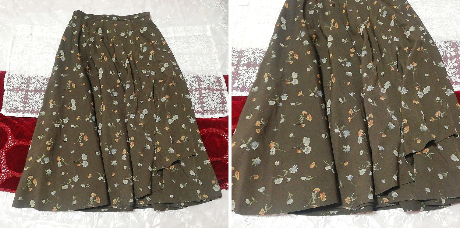 こげ茶色花柄マキシロング巻きスカート Dark brown floral print maxi long wrap skirt, スカート, ロングスカート, その他